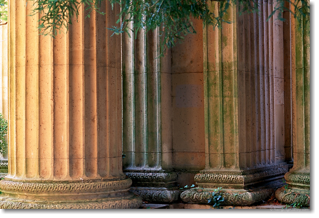 several Roman columns crowded together