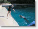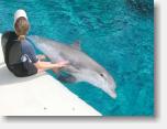 c26725 actor in Mystere putting wig on audience member