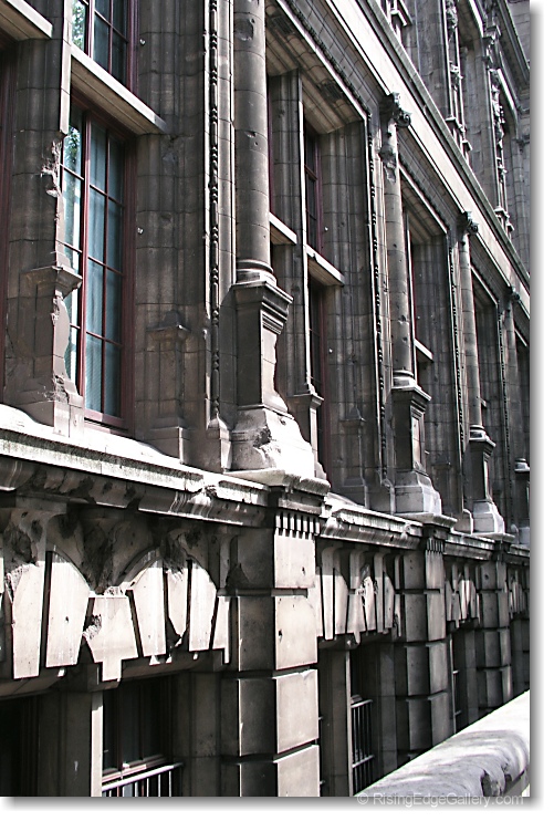 These building surfaces show numerous chips from WWII