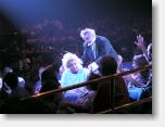 c26725 actor in Mystere putting wig on audience member
