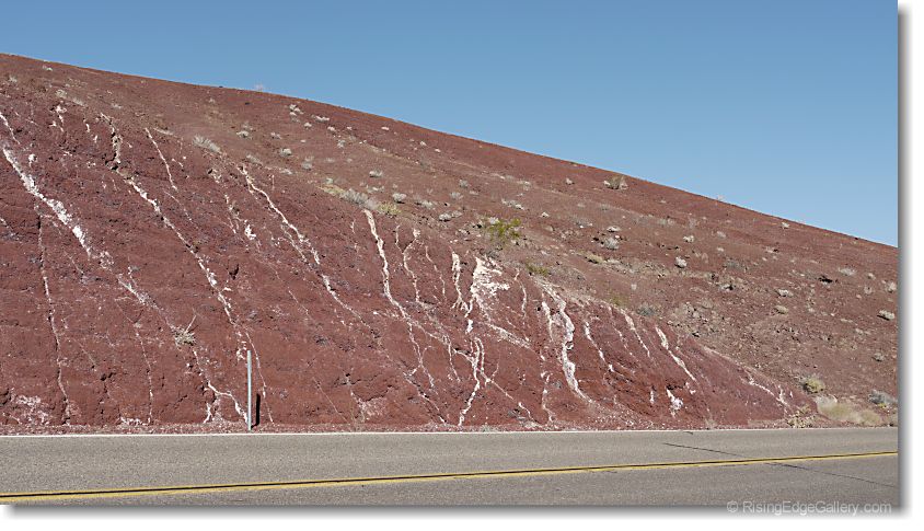 Veins of borax look like milk flowing down the rocks